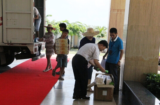 6月27日上午,一輛載滿清涼飲料和勞保用品的貨車緩緩駛?cè)肟抵ニ帢I(yè)廠區(qū)大院。海口高新區(qū)總工會慰問小組一行來到我司為堅(jiān)守在高溫一線的職工送來清涼問候。