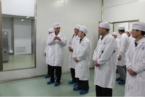 隨后各位領導前往康芝生產車間參觀,了解現代化藥品生產流程的各個環節。王培總經理就生產車間的運作情況,為客人們做了翔實生動的講解。