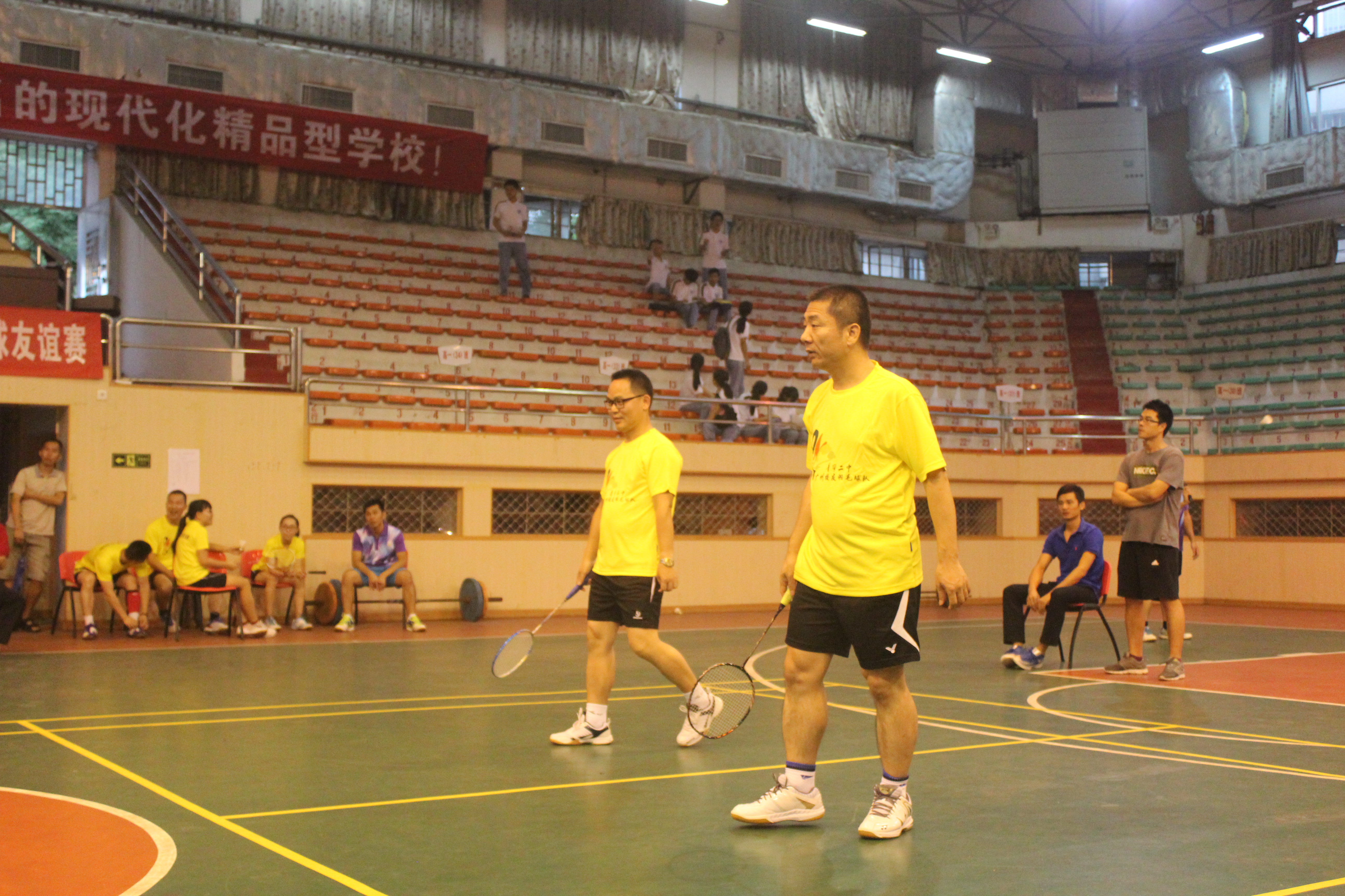 10月8日下午,康芝藥業董事長洪江游先生帶領康芝羽毛球俱樂部成員,風塵仆仆來到其母校普寧二中參加羽毛球友誼賽。當天,以洪江游董事長為首的康芝羽毛球俱樂部,和普寧二中廣州校友聯誼會秘書長羅勇強先生等校友代表組成了聯合代表隊,與普寧二中副校長陳偉旭先生率領的二中代表隊進行了一場精彩對決。