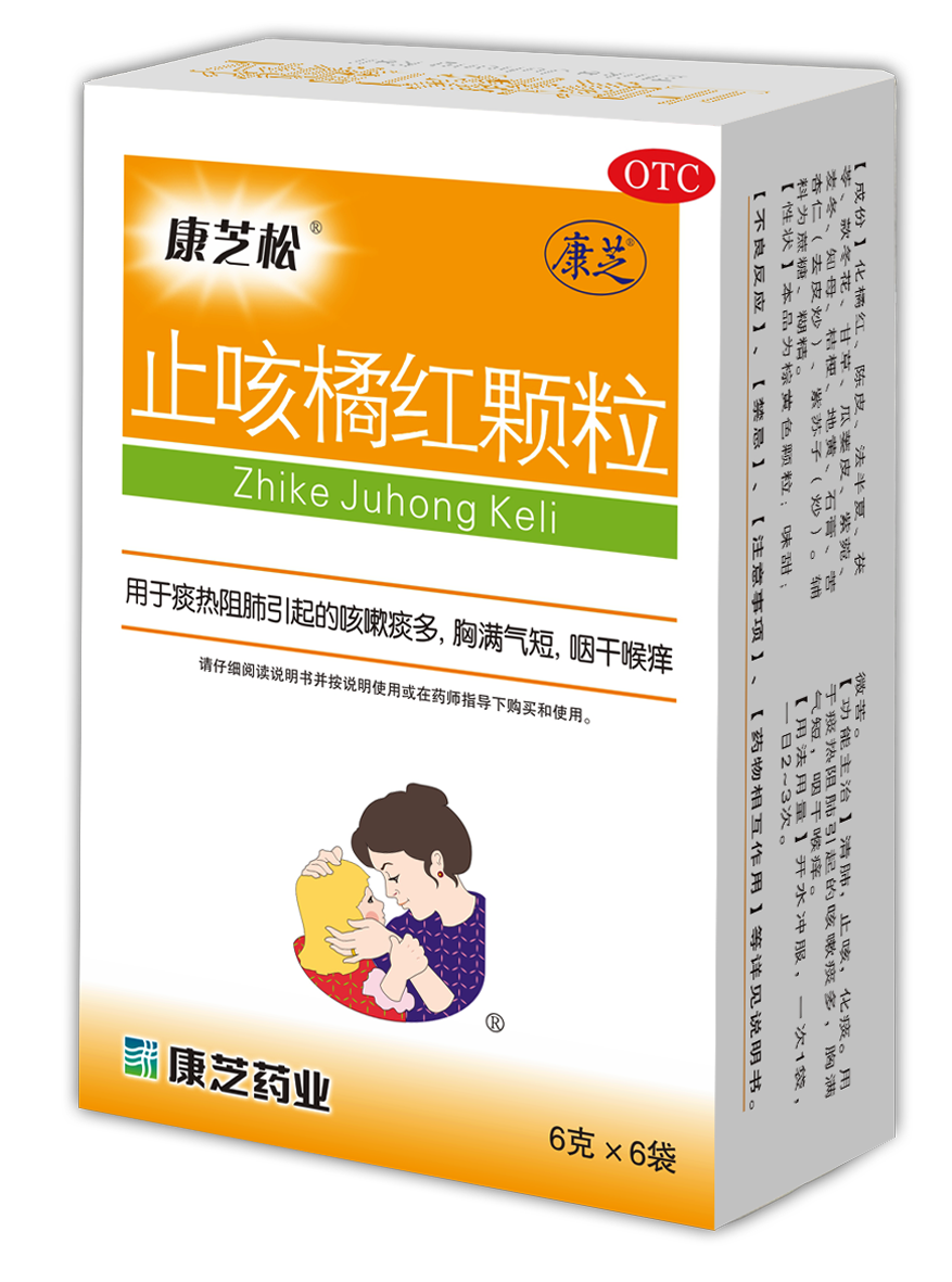 康芝松?(止咳橘紅顆粒)是康芝藥業兒童止咳系列明星產品,亦為獨家品種、全國醫保乙類產品、國家二級中藥保護品種。康芝松主要作用為清肺、化痰、止咳,用于治療痰熱阻肺引起的咳嗽痰多,胸滿氣短,咽干喉癢。其配方中的君藥采用了來自廣東化州的“正毛化橘紅”,是化橘紅中的珍品。