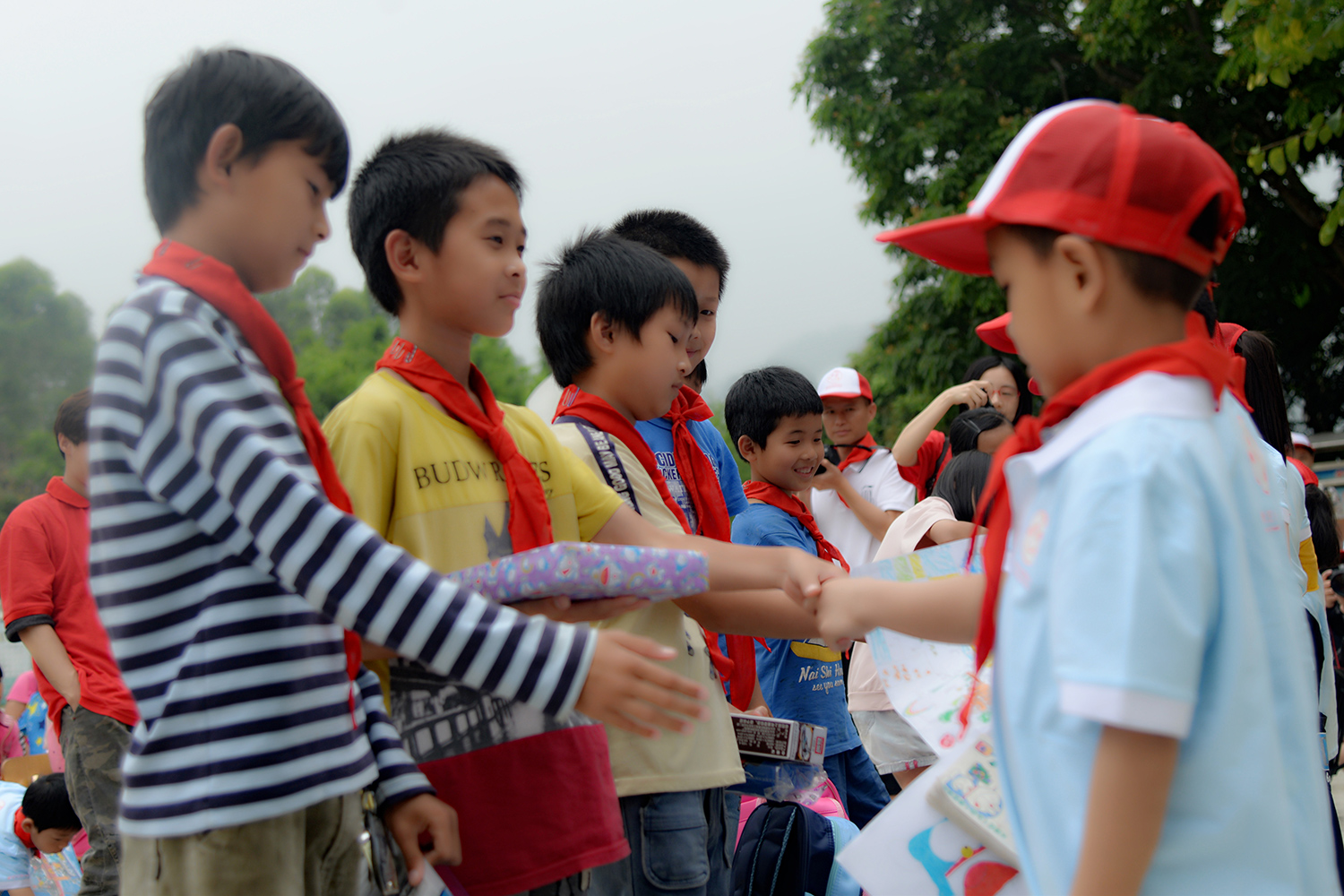 隨后進行的是孩子們互贈禮品的環節,暖暖的純真的情誼洋溢現場。小志愿者們將一家人共同準備的愛心禮物送給了肇慶山區的小伙伴,而小伙伴們也回贈了自己精心繪制的美術作品。