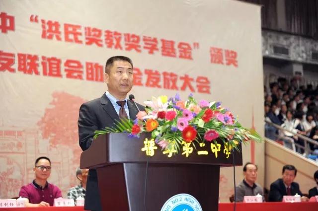 10月30日,2017普寧二中“洪氏獎教獎學基金”頒獎暨廣州校友聯誼會助學金發放儀式隆重舉行。康芝藥業董事長、廣州普寧二中校友會會長洪江游先生蒞臨現場致辭并頒獎。