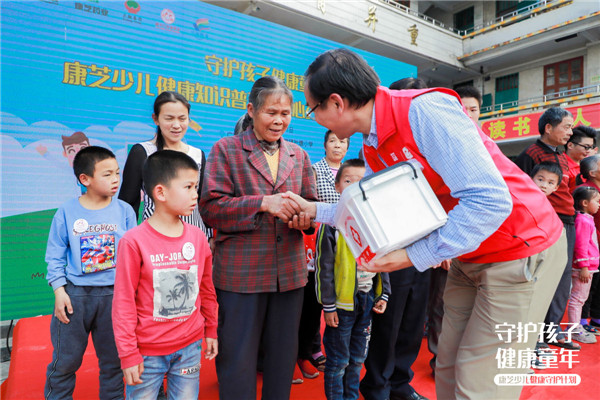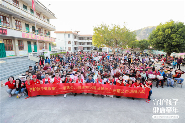 2019年,康芝藥業(yè)積極響應(yīng)國家脫貧攻堅及健康中國的號召,聯(lián)合大翔藥業(yè)等知名藥企,發(fā)揮藥企本身能量,通過康芝紅臉蛋基金為廣大少年兒童和家長普及兒童健康知識,開授“少兒健康常識和急救知識公益課堂”,并為孩子們和家庭配備一個少兒健康愛心藥箱,為孩子的健康成長保駕護航。