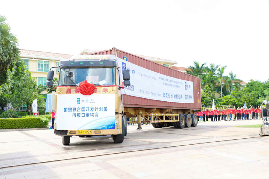 9月23日,聯合國開發計劃署與國際潮團總會戰略合作簽約儀式暨捐贈抗疫物資發車儀式在康芝藥業海南總廠圓滿舉行。由康芝藥業生產的符合聯合國受捐標準的100萬只口罩順利交到國際潮團總會手中,承載著全球潮人和康芝人愛心的抗疫物資車已溫暖出發。