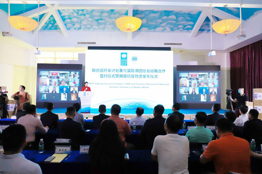 除捐贈抗疫物資發車儀式外,活動中,國際潮團總會主席洪江游、執行主席陳幼南博士代表國際潮團總會簽署了與聯合國開發計劃署的合作備忘錄,雙方正式建立戰略合作伙伴關系。