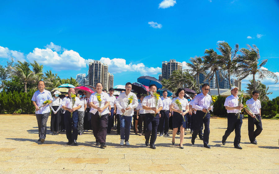 在海南臨高角解放公園,來自康芝藥業黨支部攜手華夏銀行海口分行黨委的全體黨員干部、預備黨員、入黨積極分子在革命烈士紀念碑下敬獻花束,對烈士表示崇高敬意。