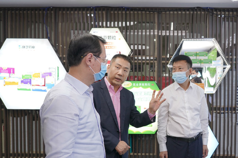 陳綠平副省長一行參觀了康芝集團的文化走廊、集團旗下康芝藥業(yè)和愛護公司的產(chǎn)品展廳,對康芝集團的發(fā)展歷程、戰(zhàn)略布局、業(yè)務(wù)板塊、科研實力、企業(yè)文化和公益項目等進行了深入了解和互動交流。