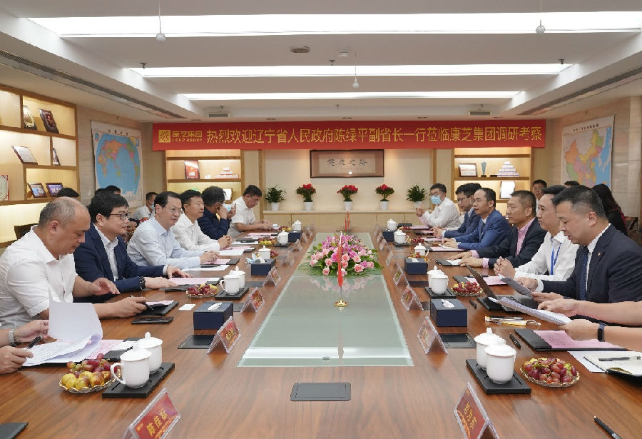 10月11日下午,遼寧省副省長陳綠平一行來到康芝集團進行調(diào)研考察,康芝集團董事長洪江游、康芝集團董事兼康芝藥業(yè)總裁洪江濤率高管團隊熱情接待。遼寧省商務(wù)廳廳長宋彥麟、商務(wù)廳副廳長潘爽、發(fā)改委副主任黃洋、財政廳副廳長鄒大鵬、自然資源廳副廳長王宗林、工業(yè)和信息化廳二級巡視員郝慶順、沈陽市政府副秘書長陳佳標、沈陽市鐵西區(qū)區(qū)長兼沈陽經(jīng)濟技術(shù)開發(fā)區(qū)(中德園)管委會主任郭忠孝等政府部門領(lǐng)導(dǎo)陪同參加了調(diào)研活動,康芝藥業(yè)副總裁兼董秘林德新、董事長助理王勇等企業(yè)高管一同參與了本次接待。