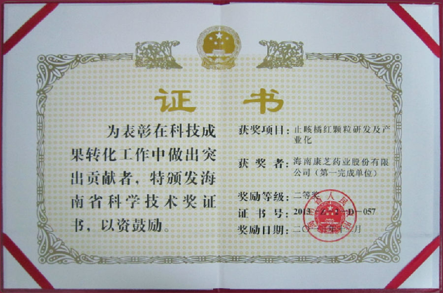 康芝?止咳橘紅顆粒作為康芝明星藥品,投產(chǎn)上市多年,適用人群可涵蓋成人及兒童。曾于2010 年被列為國家火炬計劃項目產(chǎn)品,2013年榮獲海南省科技成果轉(zhuǎn)化二等獎。此次入選“2021年海南省重點研發(fā)計劃項目”,更是充分體現(xiàn)了康芝藥業(yè)在兒童藥研究領(lǐng)域已具有較強(qiáng)的研究基礎(chǔ)與學(xué)術(shù)影響力。