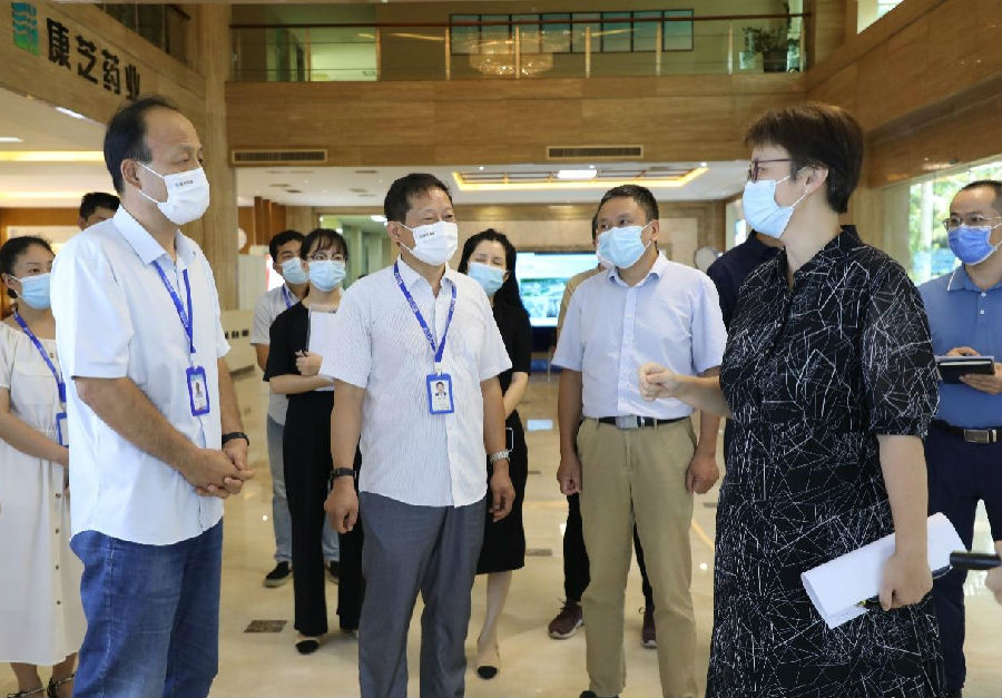 隨后,海南省藥監局朱寧局長一行在我司領導的陪同下,參觀了康芝藥業的醫用防護口罩生產車間,康芝藥業海南基地總經理高洪常現場匯報了康芝藥業的口罩產品情況、海南(國際)醫療防護用品生產基地項目情況以及本次疫情期間康芝藥業踐行的“疫情防控與安全生產兩頭抓”的閉環生產管理辦法。朱寧局長對康芝藥業在疫情期間積極履行社會責任、擴充產能、申報創新產品與服務、服務疫情防控大局等方面給予了充分肯定。