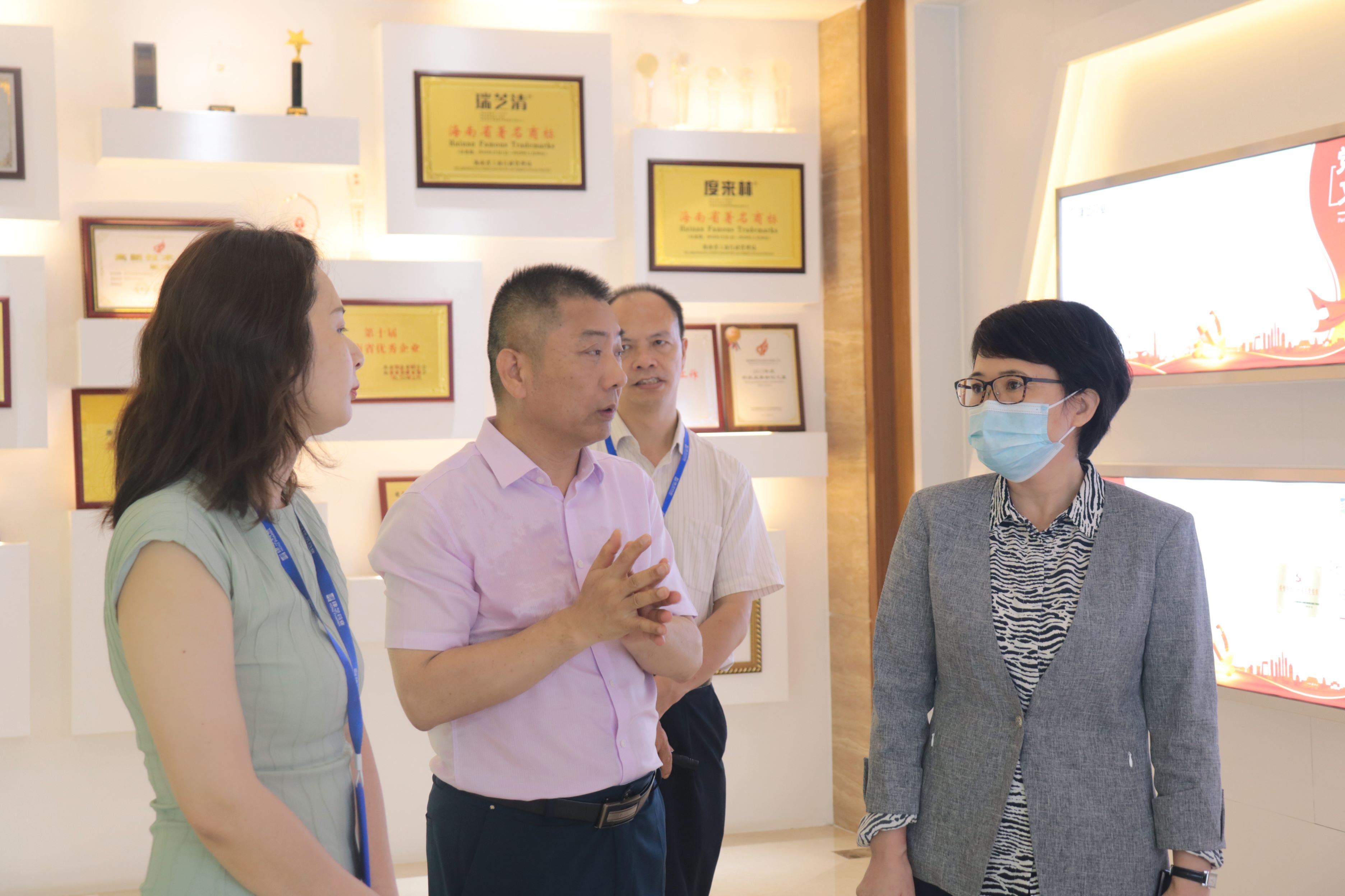 本次調研活動中,海南省委統戰部常務副部長康拜英一行首先參觀了康芝藥業企業文化展廳,并在洪江游董事長的介紹下,進一步了解康芝藥業的企業愿景和兒童大健康戰略布局。