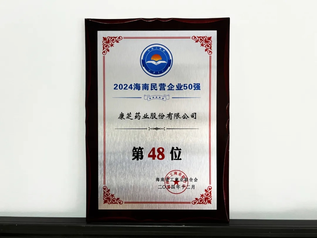 本次康芝藥業(yè)榮登“2024海南民營企業(yè)50強”榜單,是社會各界對公司綜合實力的認可,更是對公司未來發(fā)展的激勵和鞭策。