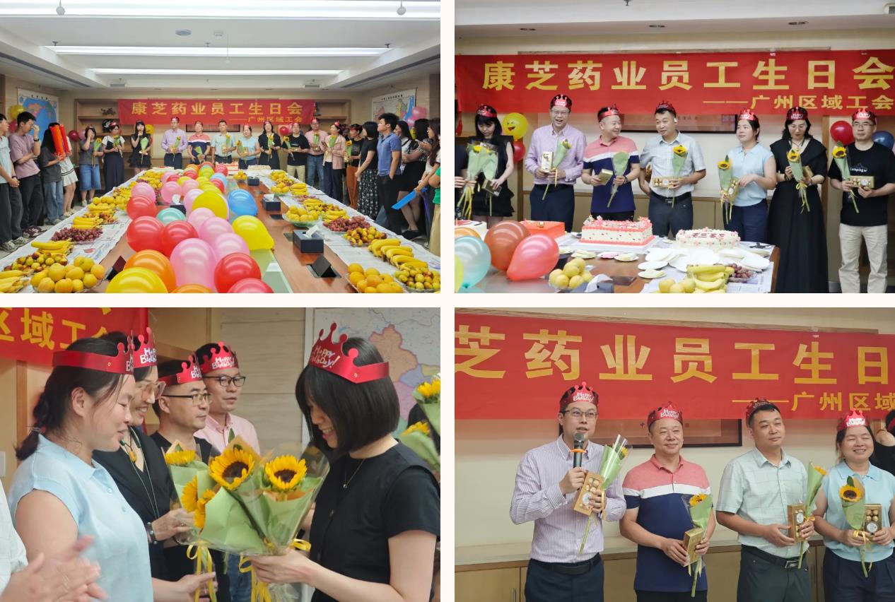 當日下午,廣州區域員工生日會在大會議室圓滿舉行。活動現場經過精心布置,五彩斑斕的氣球、精致的裝飾隨處可見,桌上精美的生日蛋糕、新鮮的水果,精心挑選的向日葵、甜蜜的巧克力,無一不在向康芝壽星們傳遞著美好祝福。