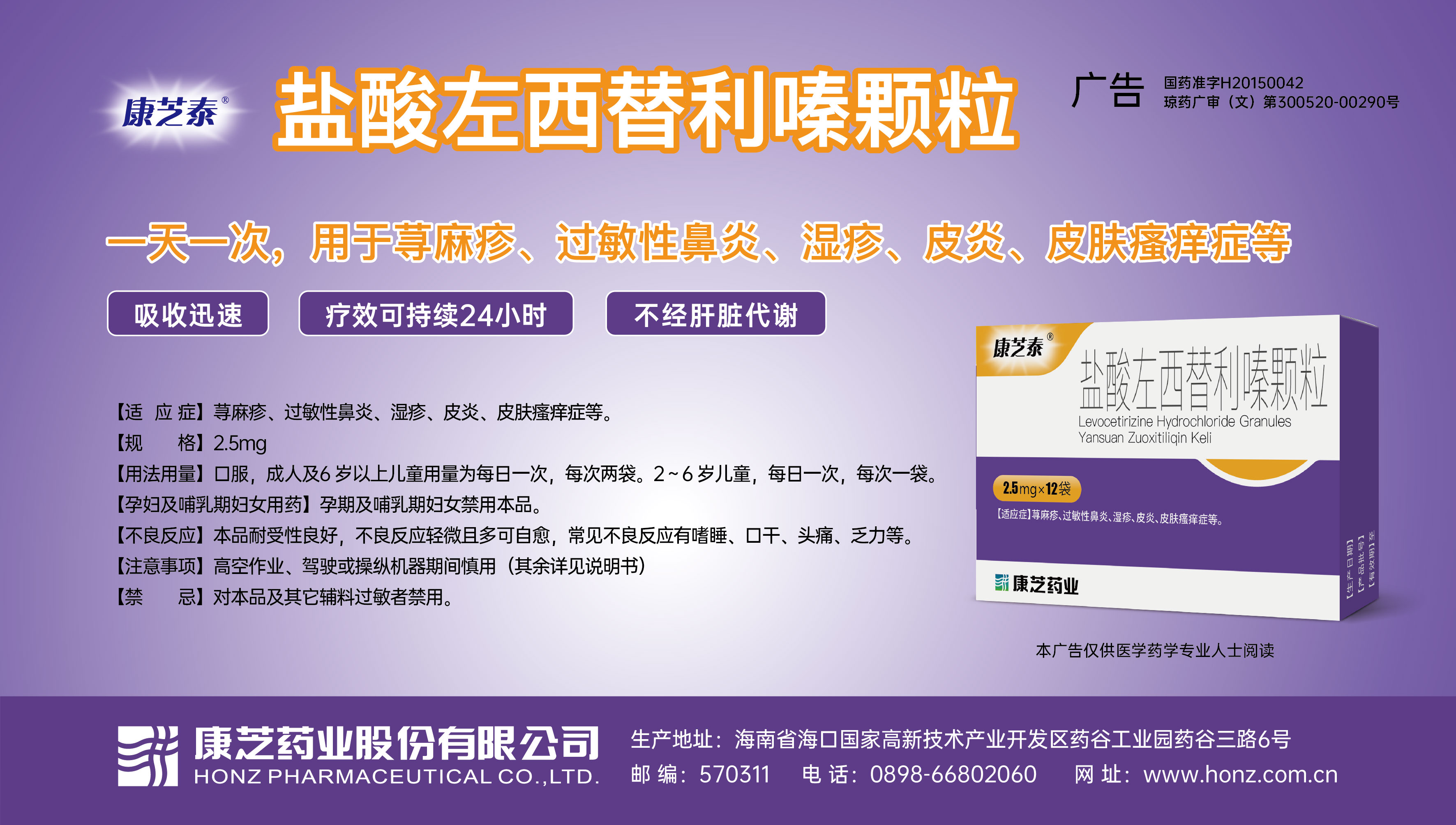 關于康芝泰®鹽酸左西替利嗪顆粒