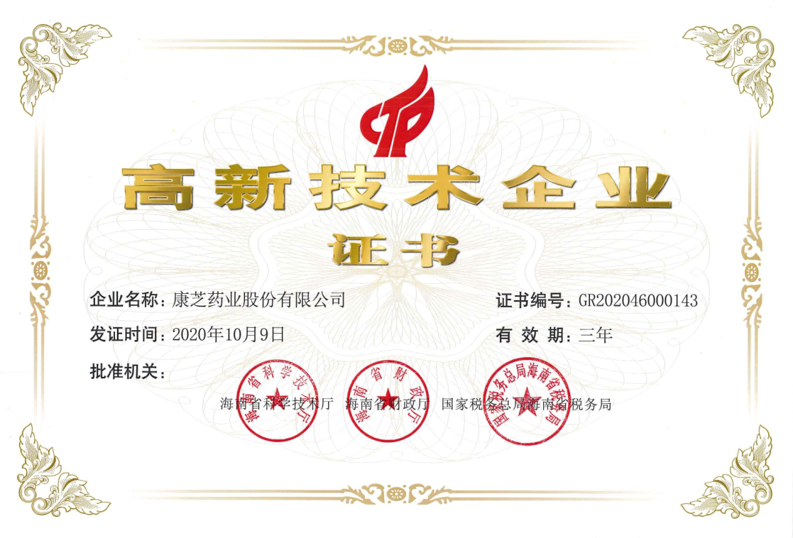 查看詳情近日,康芝藥業(yè)成功通過(guò)海南省2020年高新技術(shù)企業(yè)認(rèn)定名單,第五次成功認(rèn)證“高新技術(shù)企業(yè)”!